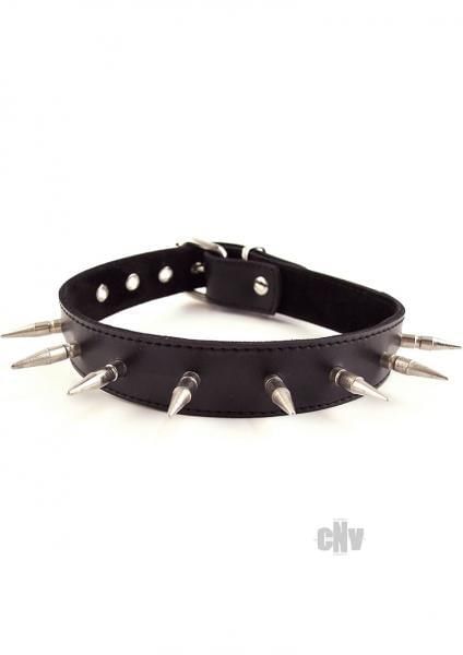 1 inch Spike Spiked Collar, Plain Rouge leather collar with 1 inch 8 metal Spikes in a row lined in the back of the collar for comfort. The leather is soft and able to take the shape according to you or your partners neck. Fully adjustable buckle closure. Excellent matching stitching according each collar color. This slave collar has a hard edge to give a BDSM feel and look.